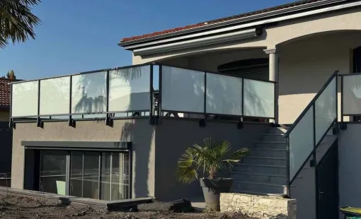 La pose d’un garde-corps vitré opaque en aluminium autour d'une terrasse et d'un escalier à Saint-Beauzire est une solution idéale pour sécuriser les espaces extérieurs tout en…
