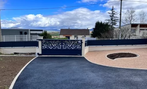 Installation d'un portail coulissant en aluminium gris anthracite 7016 et sa clôture aluminium à Plauzat 63.