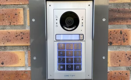 Installation d'un visiophone avec clavier code intégré et motorisation de portail battant mono vantail, 3m de large de la marque Came à Clermont-Ferrand.